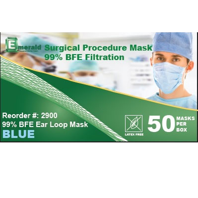 Surgical Face Mask With Earloops 3 Ply Bfe 99 Box Of 50 Blue