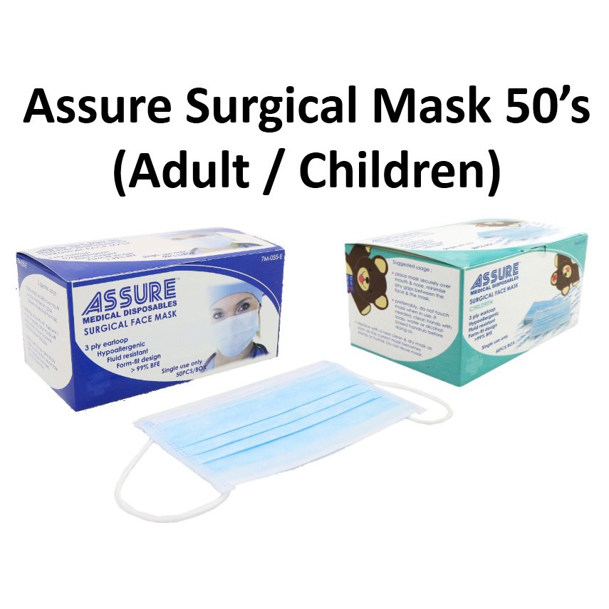 Assure Disposable Surgical 3ply Mask 50pc 7m055e Shopee Singapore